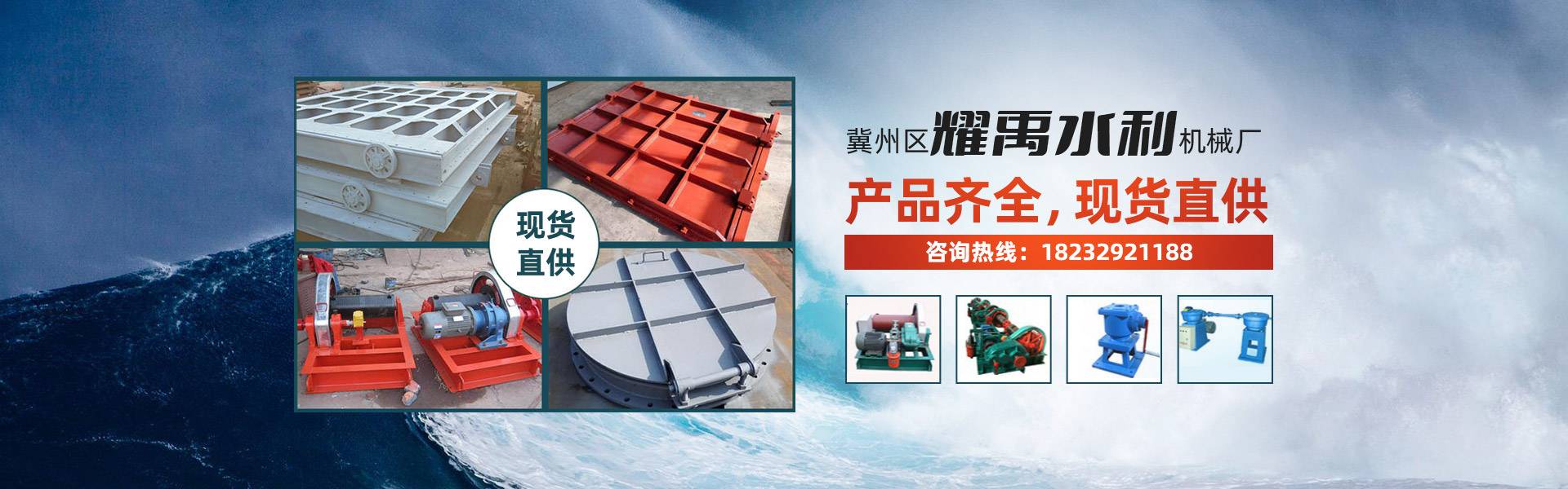 我厂主导产品有: 一、LQ型螺杆式启闭机,小吨位有平推式和侧摇式,可带机锁装置,大吨位(5T-60T)有手动及手电两用式,直联式,可配有高度行程及过载保护装置。 二、铸铁闸门(0.2米-6米)有单向止水,双向止水,该产品具有耐腐蚀,止水效果好,安装维护简单,使用寿命长等特点。 三、卷扬式启闭机(5T-250T),有固定和移动式,分单吊点及双吊点式,手动及手电两用式,可配有过载保护及上下极限装置。 四、钢制闸门造型各异,按用户要求生产制作。 五、拦污栅及GQ型清污机用于泵站,电站及水渠拦截清除水中漂浮物、沉淀物等。 六、止水橡皮,桥梁伸缩缝、橡胶支座均通过 , 及橡胶研究所化验,所有项目均达到国标要求。